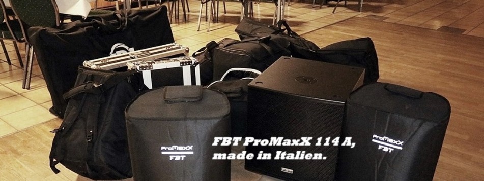 Die Lichttechnik und zwei Funkmikros sind in den Festpreisen enthalten. Nach Ihrer Eventgröße und der Stellfläche wird im Saal aufgebaut. Der Sound kommt aus den FBT ProMaxX 114 A, bei größeren Feiern mit zwei Subwoofern. Lichteffekte: Scanner der Marke Chauvet und 2 Lichtsets.